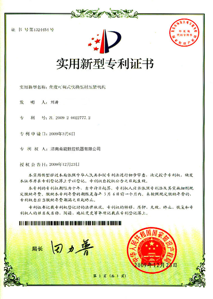 2009年,通过ISO9001和欧盟CE认证,采用ERP系统实现数字化管理,优化铝/PVC/轻型合金门窗幕墙的全流程生产。获实用新型专利证书,实用新型名称:角度可调式决换型材生紧机构。