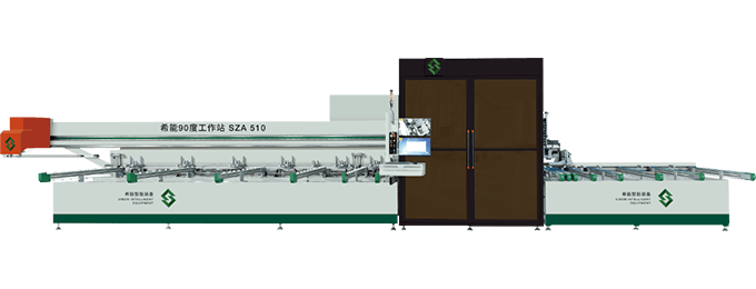 该工作站是我公司为迎合家装市场门窗多元化、批量化、多人工、产能低、难管理、易出错,全新研发配合 45 度工作站而创新研发的新一代智能 90 度工作站