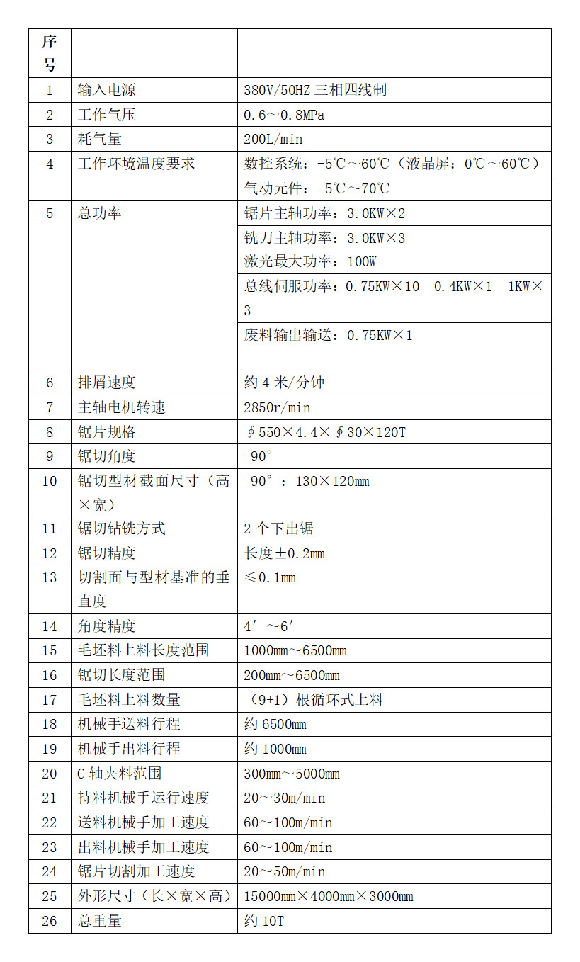 该机采用进口工业控制计算机系统和总线伺服驱动控制单元,集ERP门窗软件+高效锯切+二工位两方向3轴钻铣+单激光划线一体化智能柔性高效加工,型材一次定位即可完成切割、打孔、端面铣削、中柱